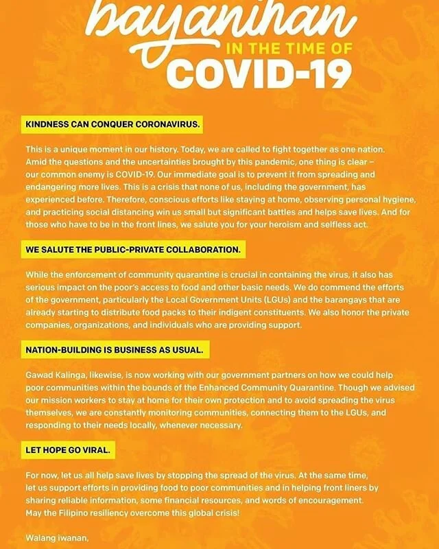 If you are in a position to give, please help GK provide financial support to the communities hit hardest by the Enhanced Community Quarantine imposed by the Philippine government across the entire country due to COVID-19.